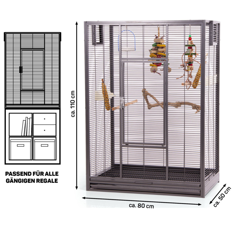 Voldoende ruimte voor parkieten en kleine papegaaien.