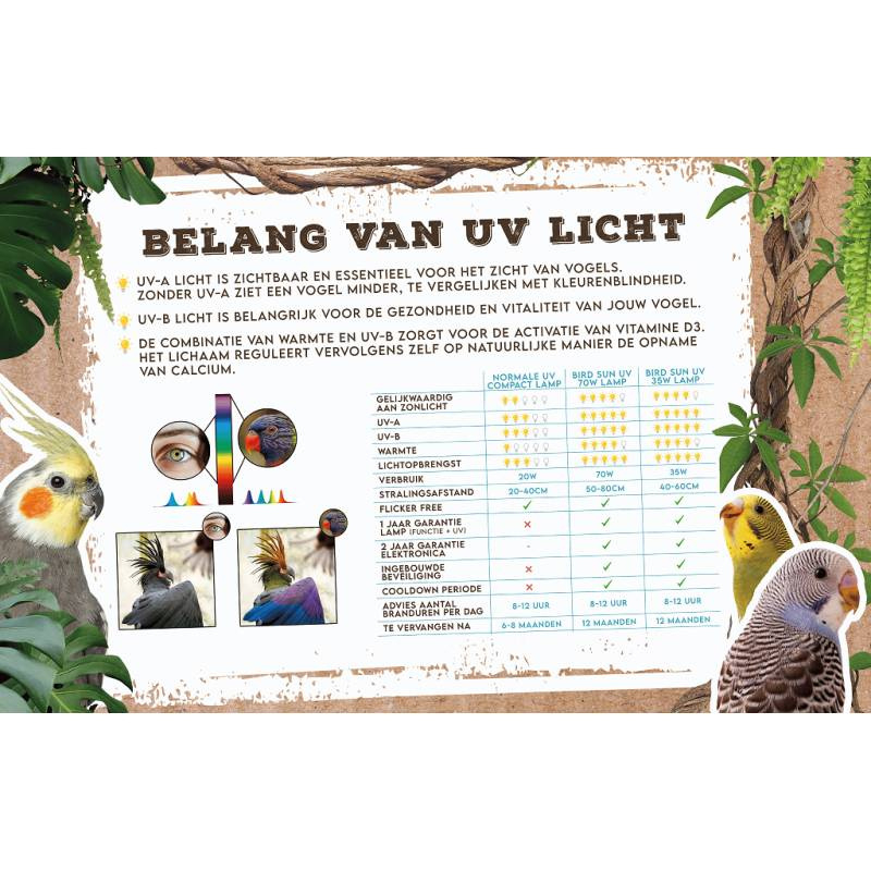 Artikelnummer: ZF7762De Bird Sun UV-Lamp 70W is een professionele lamp als verlichting voor vogels, vergelijkbaar met de zon.