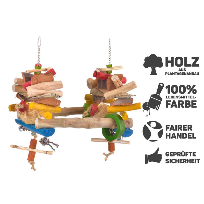 Ideaal als klimplezier in de vogelkooi of als hangende zitplaats. Voor grijze roodstaarten of grote vrienden zoals ara's of kaketoes.
