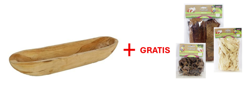 Foerageerschaal teak is voorzien van RVS kettingen en montage materialen voor lang en veilig foerageerplezier.
