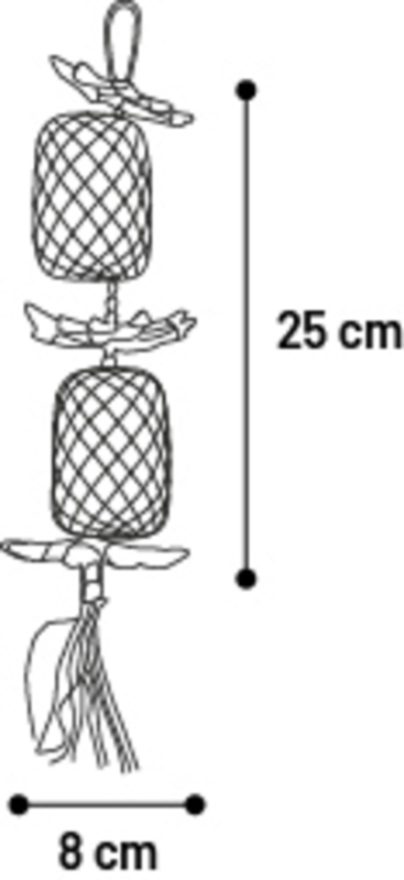 Gemaakt van natuurlijke materialen voor veilig knabbelplezier. Verstop lekkere snacks voor extra uitdaging. Hang 't makkelijk op en zie je gevleugelde vriend genieten! Let op: kleuren kunnen afwijken, maar de fun blijft 'tzelfde!
