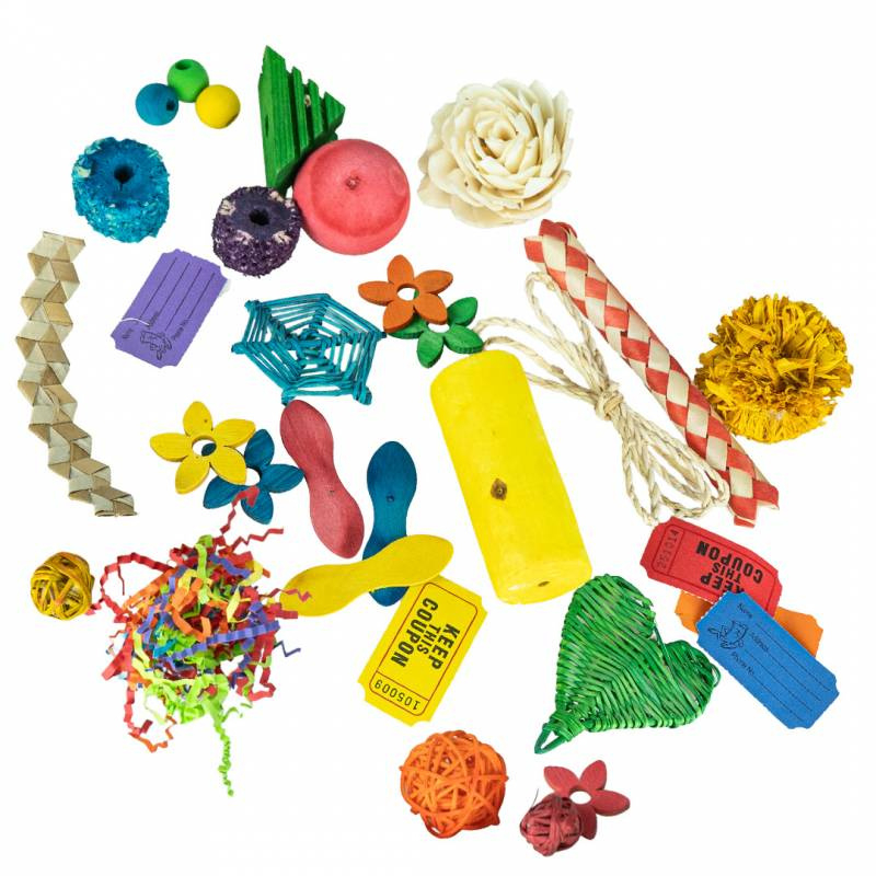 Creatief en interactief: Bouw samen met je vogel een uniek speeltje dat uitnodigt tot trekken, kauwen en spelen.