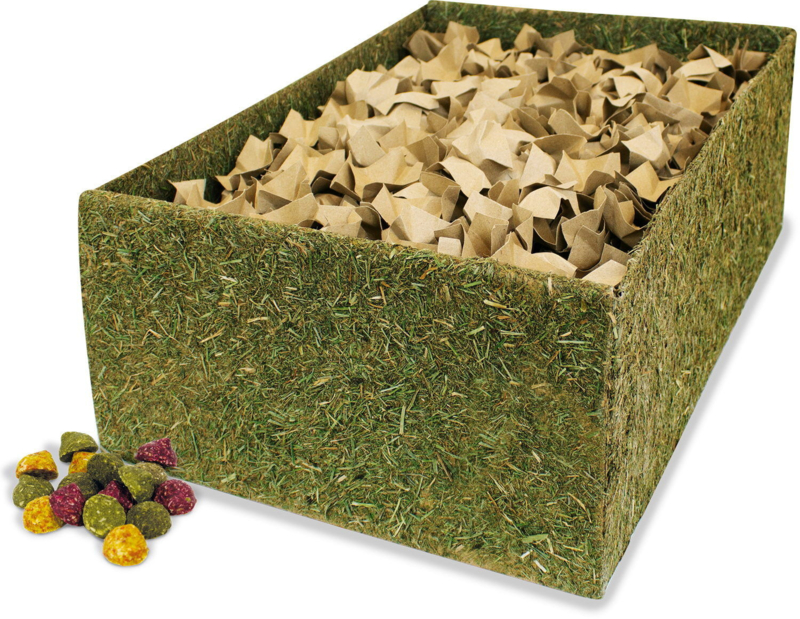 fourageerbox WoodVerstop de favoriete snack van je huisdier tussen de houten stukken en je dier zal met plezier op zoek gaan naar de traktatie. Het Snuffelbos is gemaakt van een natuurlijke vezelplaat bedekt met hooi dat volledig eetbaar is.